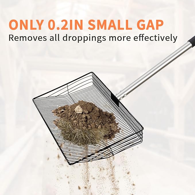 - Ergonomic & Comfortable to Use: Designed for long-term use, this lightweight scooper features an adjustable handle with a soft rubber grip to minimize bending and reduce back strain during cleaning. Whether you're tidying up chicken coops, cat litter boxes, cow pens, or horse stalls, it makes the job easier and more comfortable.