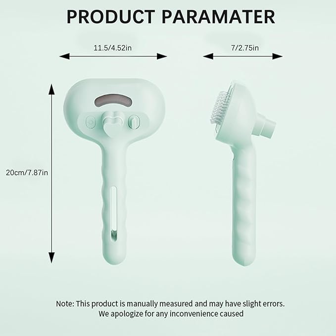 - 3.One-Click Self-Cleaning Design, Simplifies Cleanup: Unlike traditional brushes, this pet steam brush has a convenient one-click cleaning feature. After brushing, simply press the cleaning button on the back of the brush, and the fur will easily fall off the bristles, preventing hair from scattering everywhere. This makes cleaning effortless, helping you keep your pet’s grooming tool clean and hygienic with minimal hassle.
