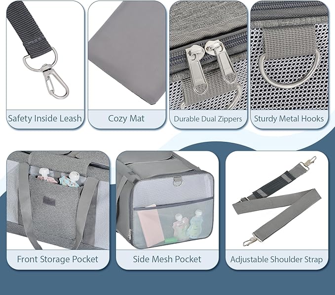 - DURABLE MATERIALS FOR LONG-TERM USE: Crafted from tough 300D Oxford fabric that resists scratching and wear. Equipped with dual metal zippers and double anti-escape safety leashes to ensure your pet stays securely inside. Built to last through all your travel adventures.