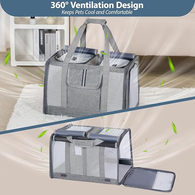 Cat Carrier for 2 Cats – Large Soft-Sided Pet Travel Carrier, Dual Compartments, Privacy Protection, Dog Carrier for Small/Medium Dogs, Home & Outdoor Use