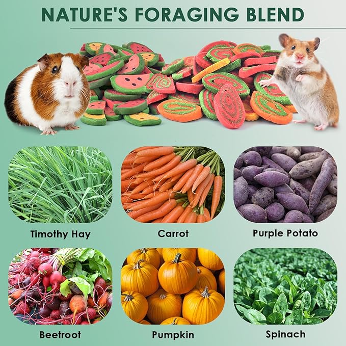 - NATURAL RABBIT TREATS: Made of carrot, timothy grass, purple potato, pumpkin, beetroot and spinach, through high temperature baked into multi-taste of hardness snacks, provide a better role in teeth grinding.