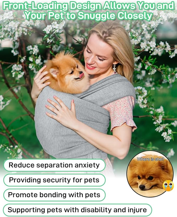 - Reduce Pet Anxiety: The puppy sling designed like a cozy swaddle carrier, it cradles cats or small dogs safely against your chest, so promote bonding with your pet. While providing a sense of security and effectively reducing your pet's anxiety and stress