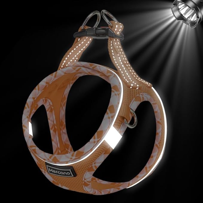 Mercano Soft Mesh Dog Harness and Leash Set, No-Chock Step-in Reflective Breathable Lightweight Easy Walk Vest Harnesses with Safety Buckle for Small Dogs, Cats (Orange, M)