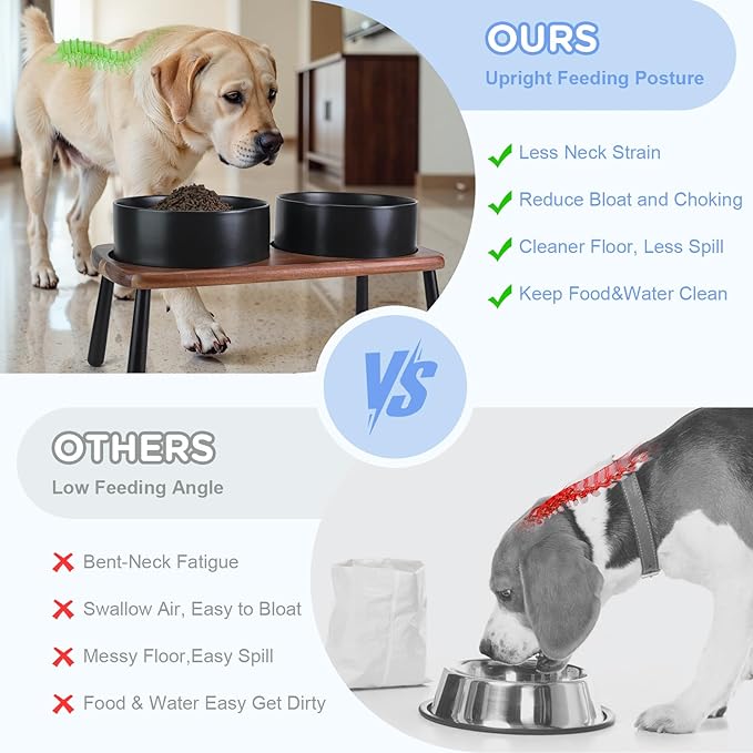 - Modern Design Meets Everyday Convenience – A aesthetic fusion of high quality ceramic and durable acacia wood and eco bamboo creates the elevated dog bowls that blends effortlessly with any home decor. Multiple colors and two different functional sets avaliable to fit the different home decor and pet's needs,The bowl tolerates microwave reheats for warm meals and slides straight into the dishwasher for easy clean, while the durable stand wipes clean in seconds—ideal for any busy pet parents
