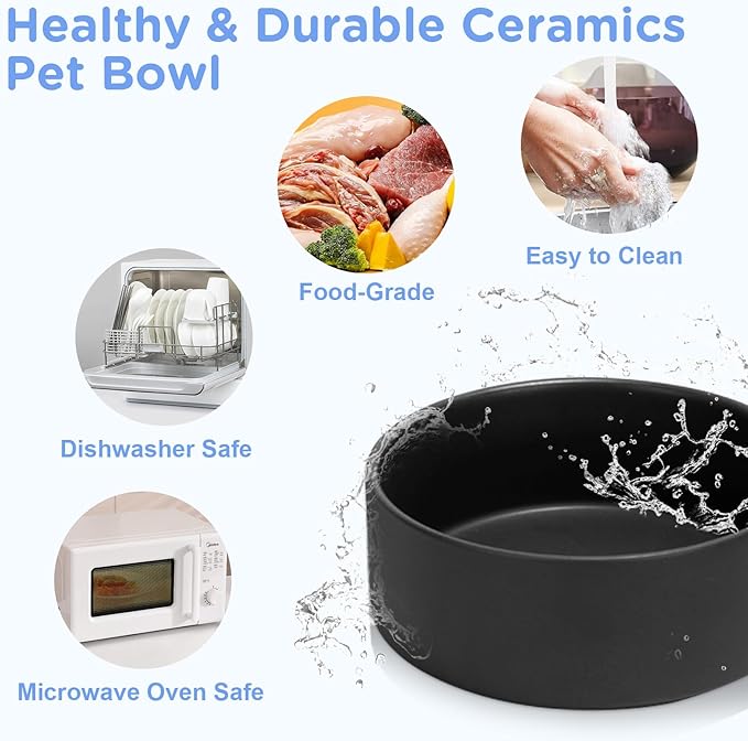 - Lead-Free Ceramic Pet Bowls - 8.3" Ceramic Dog Bowls with 60 OZ Capacity Fired at high temperature with a food‑grade glaze that contains zero lead or cadmium, these non‑porous bowls help keep meals tasting fresh, rinse clean in seconds, and both MICROWAVE SAFE and DISHWASHER SAFE