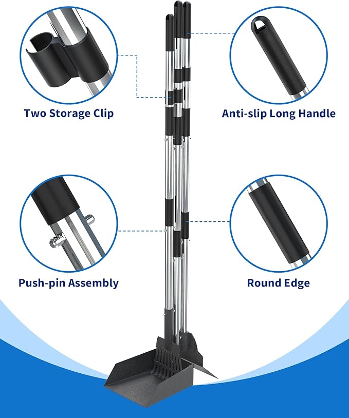 - 【Dual Storage Clip Design】Our metal pooper scooper features two secure storage clips that snap the set together tightly for easy hanging or compact storage, saving more space. No wobbling parts or lost pieces.