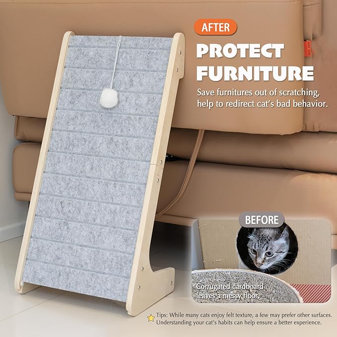- BUILT TO LAST: Unlike cardboard scratchers that would fall apart in weeks, the durable felt material and wooden frame are built to withstand years of scratching without shedding or wear.