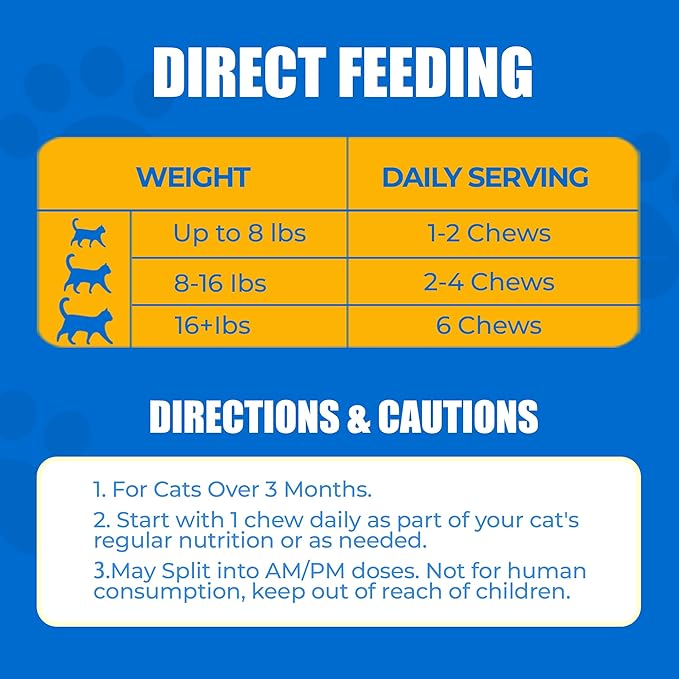 - Great Value, Long-Lasting Supply: Each bottle contains 300 chews (180g), suitable for cats of all breeds and ages (3+ months). Adjust the dosage as needed for lasting relief. For severe symptoms, consult your vet for help.