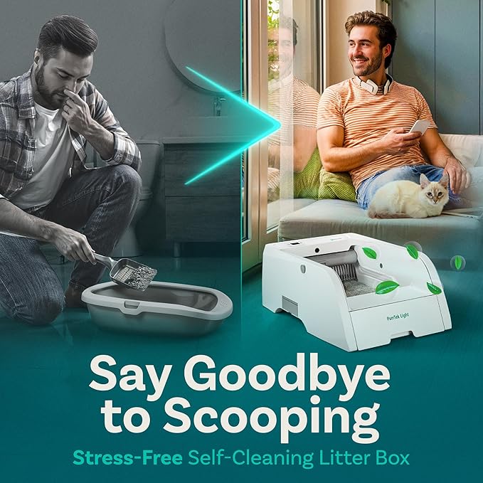 - 【Automatic Self Cleaning Cat Litter Box】 Say goodbye to scooping. PurrTek Light’s smart rake system clears waste into a sealed bin after every use—keeping your cat’s litter box fresh and ready 24/7