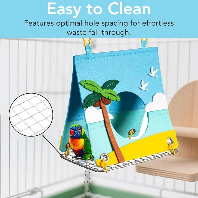 - Four Pattern Available: Choose from nature-inspired designs: "Idyllic" Cottage, "Seaside" Coast, "Verdant" Forest, or "Azure" Sky.Choose one to refresh your bird's habitat with visually stimulating, calming hideaways.