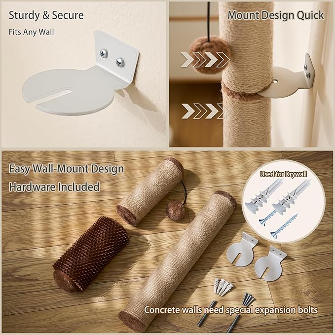 - Extra-Tall 34” Wall-Mounted Design – Vertical cat scratcher offers full-body stretching for cats of all sizes. Space-saving wall mount keeps floors clear while creating a dedicated scratching zone.
