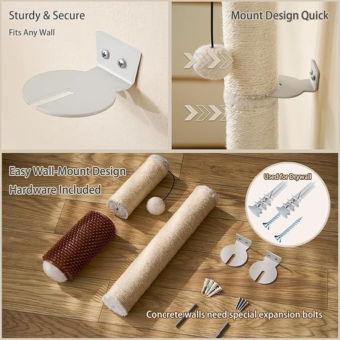 - Extra-Tall 34” Wall-Mounted Design – Vertical cat scratcher offers full-body stretching for cats of all sizes. Space-saving wall mount keeps floors clear while creating a dedicated scratching zone.