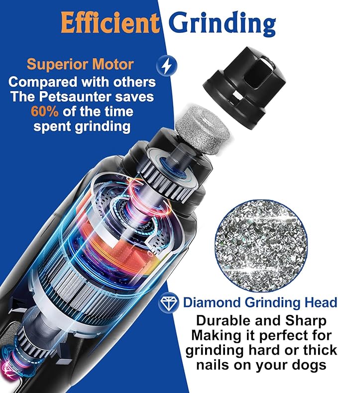 - 【Safe, Effective & Precise Trimming】: This dog nail grinder is friendly to beginners to deliver the safest, most comfortable pet claw grinding anywhere. It has 3 switches and led light. It is concise, effective and smart. Led light allows you to check the blood vessel clearly to avoid over-grinding.Note: Before purchasing, please read the product detail page carefully to ensure that you are not looking at the wrong .