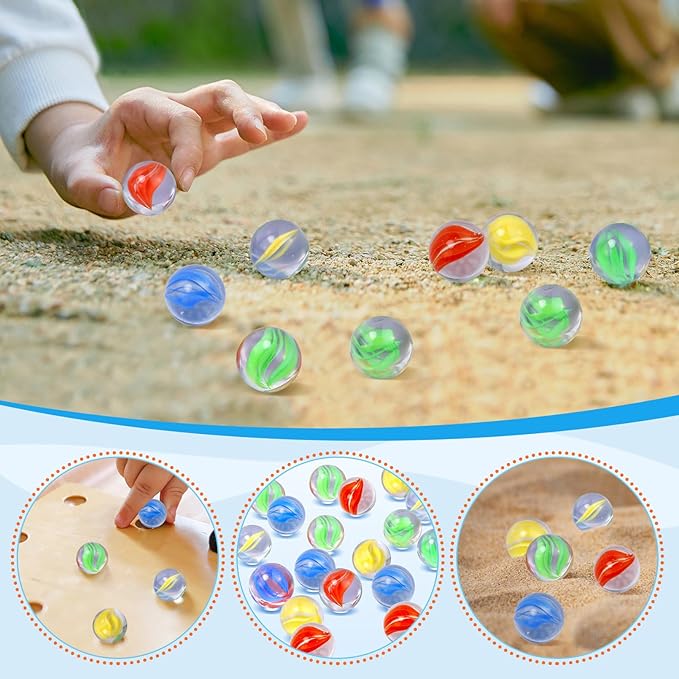 - Enhanced Abilities: These compact and portable glass marbles are great for playing anytime, anywhere. They help improve hand-eye coordination, problem-solving skills, and creativity.