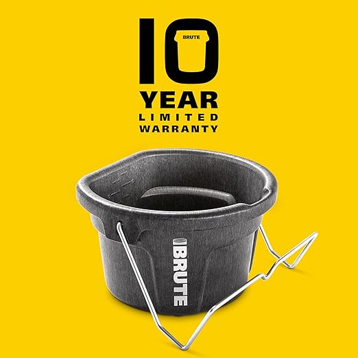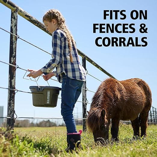 Rubbermaid Commercial Products Brute 2-Gallon 3-in-1 Flat-Back Feed Bucket with Hook-Hang-Carry Handle, RigidCell Strength, Pour Spout, USA Made for Horse & Livestock