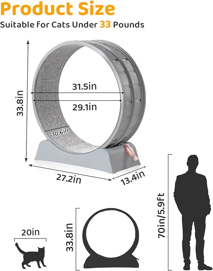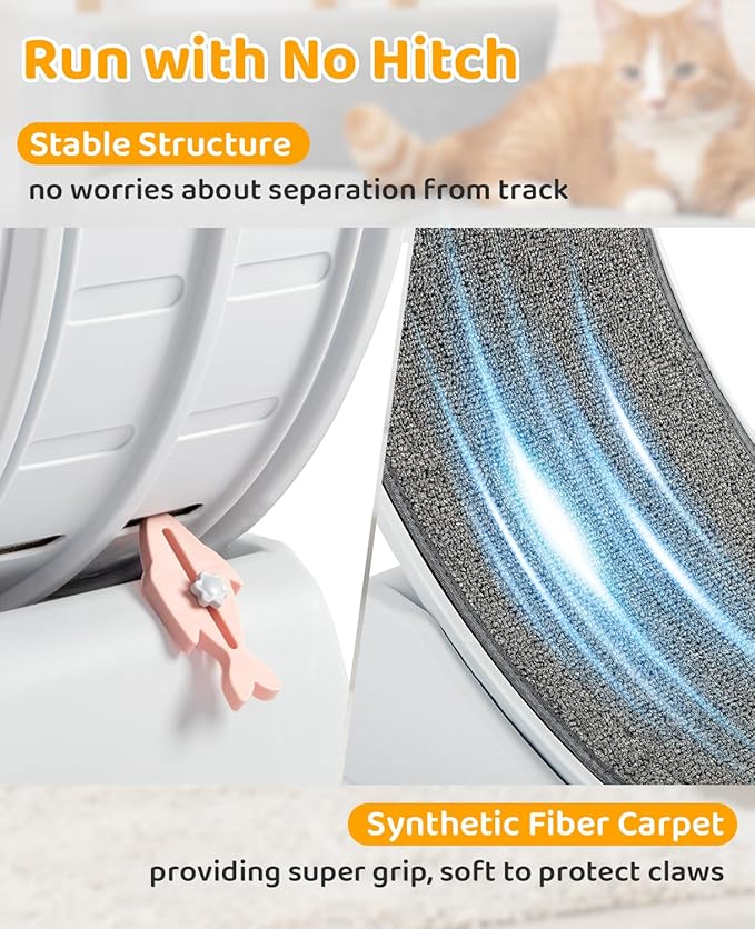 - Quiet Operation :The cat wheels for indoor cats are specially designed to ensure quiet, smooth, and noise-free operation. Suitable for use at any time of the day or night, allowing your cat to play freely in any room without disturbing you.