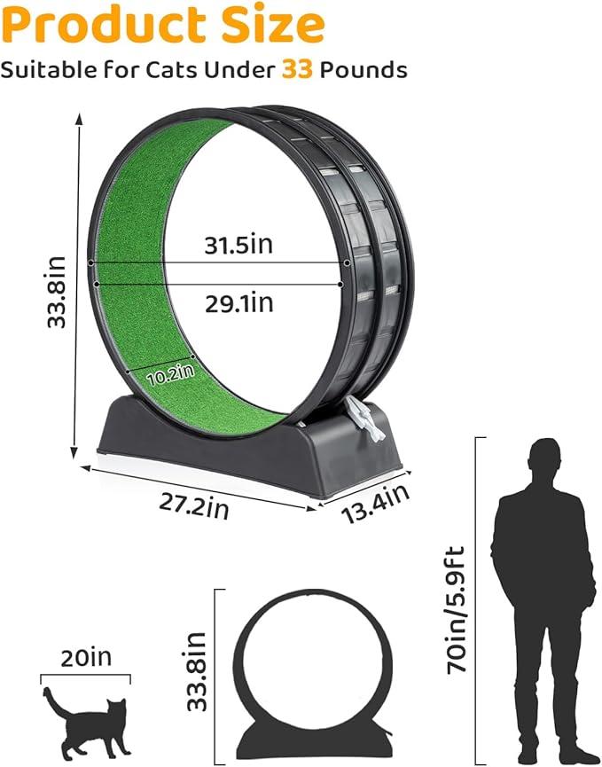 - Effortless Assembly: This cat exercise wheel is designed for easy, tool-free assembly with a snap-fit structure, allowing your cat to start exercising and playing right away. Perfect for indoor cats to release energy, reduce stress, and control weight through daily exercise.