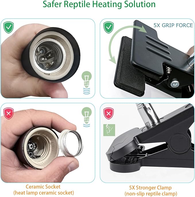 - 【Secure Reptile Light with Non-Slip Clamp】 Heavy-duty clamp with silicone pads keeps lamp stable on terrariums.