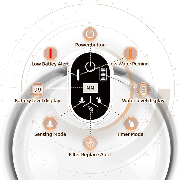 - Intelligent Water Level Display: The upgrade intelligent indicator has water level lights display 100% 75%50%. It can display of actual water level real time. The smart panel light will flash when the water level is below 50%. The 2-in-1 LED light reminder will display steady red light in the tank and the warning light will steady on orange when the water level falls blow 25%.
