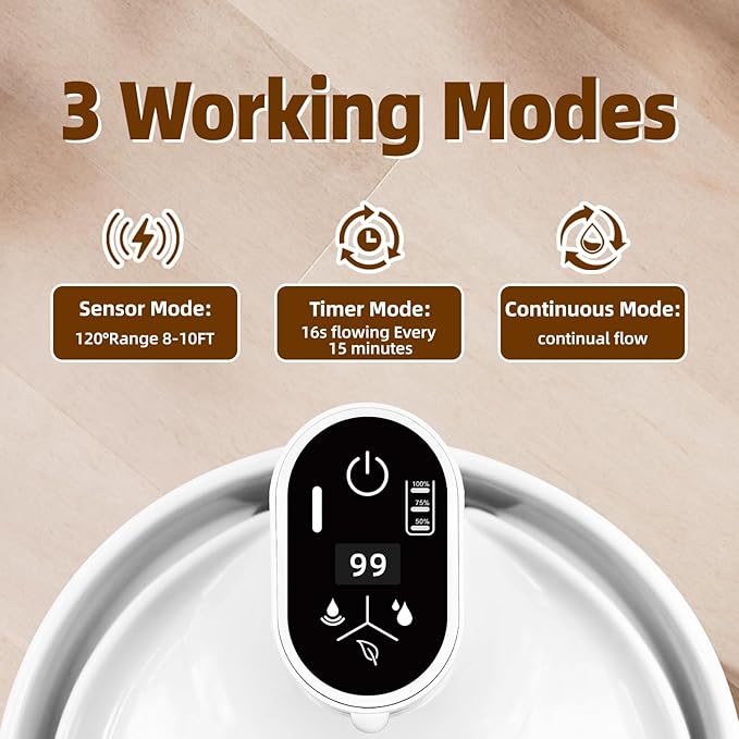 - Wireless Cat Water Fountain:You can flexibly place it in the kitchen, living room, balcony without being constrained by power cords. The ceramic cat water fountain has three modes, Sensor Mode: sense your pet and activate the flow for 16 seconds. After a long period of no response, water should be released every 90 minutes. Timer Mode: 16 seconds flowing every 15 minutes. Continuous Mode (timer mode when charging): only power supply, water running all day.
