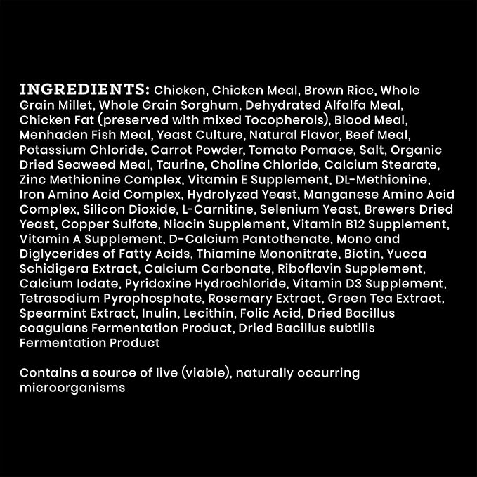 - Real chicken is the 1st ingredient- a high quality protein for lean muscle growth.