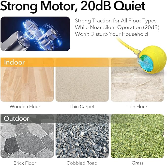 - 【Dual-Tail Interactive Cat Toy】 Features feather & rope tails to trigger hunting instincts – self-moving ball with random patterns and smart obstacle avoidance keeps cats engaged for hours, perfect for indoor cats