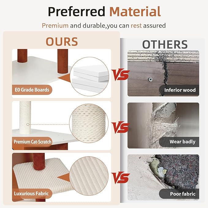 - All-in-One Feline Needs Met - Equipped with sisal scratching posts (satisfy natural scratching instincts, protect furniture), a plush top perch (cozy resting spot with a view), an enclosed condo (private safe haven), and a hanging toy (interactive play), it caters to rest, play, and relaxation.