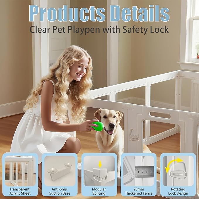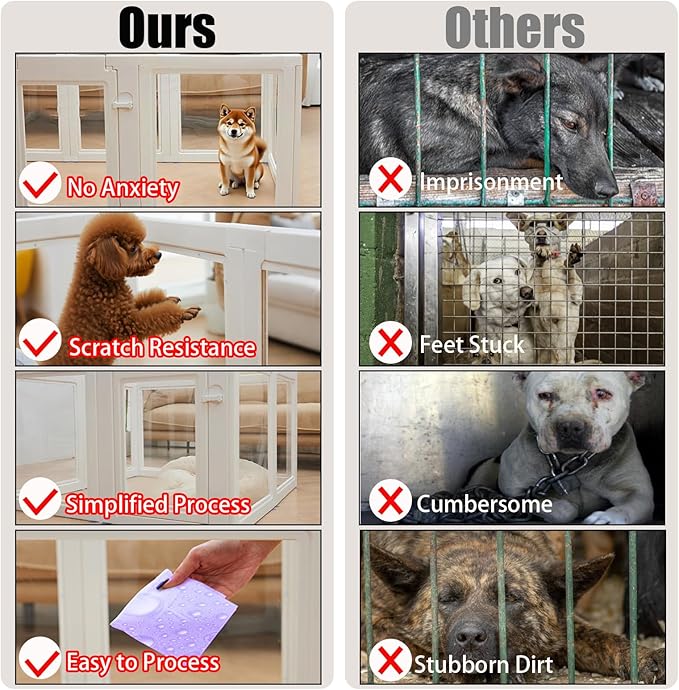 - 【Multi-functional & Stylish】Transparent Pet Pen is not only practical but also stylish, the sleek white design complements any home decor. It is perfect for indoor use and can be easily moved around to create a designated play area for your pet