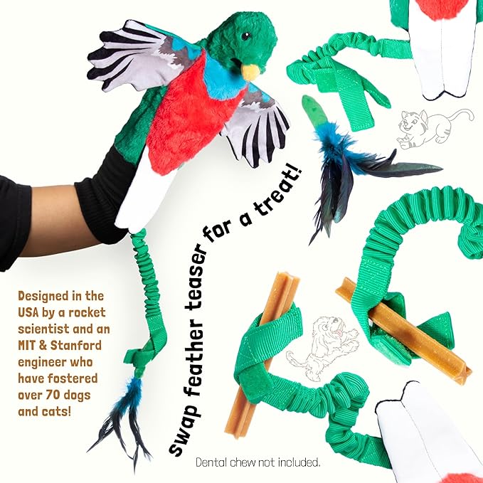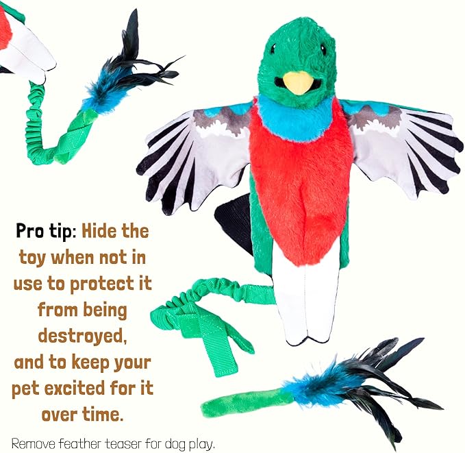 - Hidden squeaker in the throat and extra crinkly tail entertains and stimulates the pet's prey drive.