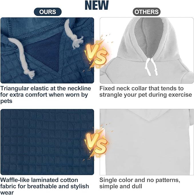 - WARM & BREATHABLE : Made from 95% polyester and 5% spandex, with a waffle-like laminated cotton. Our pet long sleeve tops coat is soft and comfortable, fresh and natural to wear and will keep your pet warm in cold weather without feeling stuffy. Soft and smooth, this dog hoodie is non-irritating and will not cause damage to your pet's skin