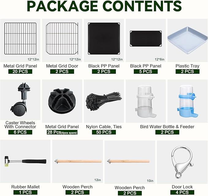- Detachable Design For Easy Cleaning:VISCOO bird cage is equipped with a plastic slide-out tray at the bottom of this parrot cage that can be removed for easy cleaning, and with removable panels for better convenience, so as to keep a clean and tidy environment. Our birdcage can also be easily assembled with our hammer but no other tools required. Spend less time scrubbing or assemble, but more time interacting with your pets.