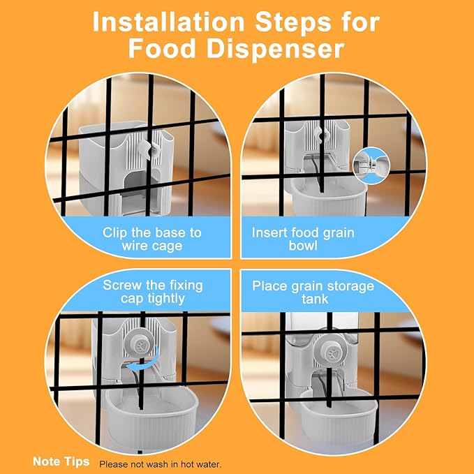 - Cage Pet Dispenser: It suits for small animals, as Cats, Dogs, Rabbit, Ferret, Chinchilla, Bird, Hedgehog, Guinea Pig and so on. Suggestions: the recommended spacing of cage wire mesh is 3-6cm (1.2-2.4inch), please measure your cage spacing before purchase.