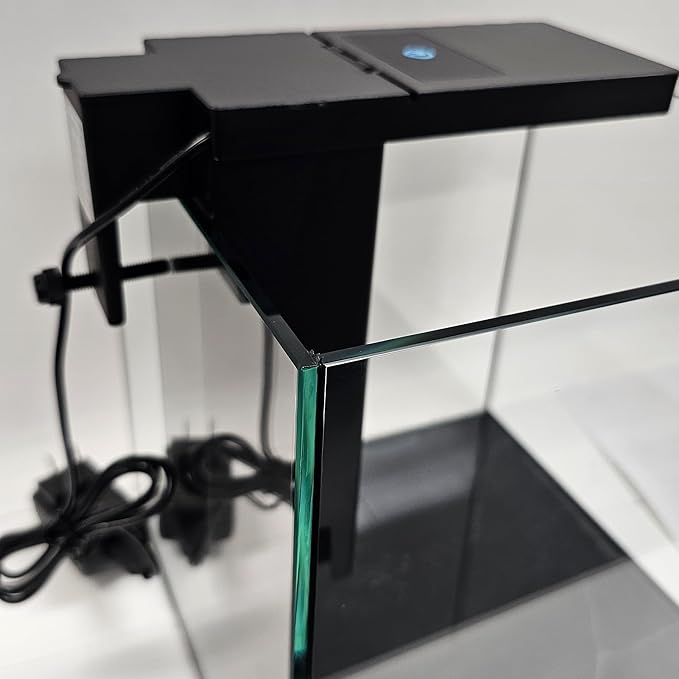 - Filter: Submersible Aquarium Filter (Works up to 3 Gallons) | Includes Filter Media Sponges, Carbon, Polish Resin | Clamp on Back of Tank Distance 0.86" for Glass Thickness | Filter Return Pump 37 GPH. 2 Watts.