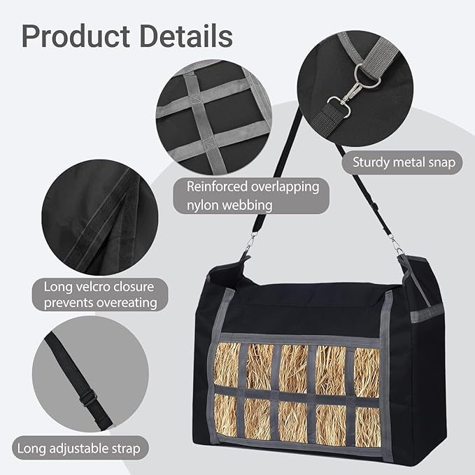 - 【Durable Construction & Large Capacity】Made from premium Oxford cloth, these horse hay net bags are built to withstand daily wear and tear. Reinforced stitching and tear-resistant materials ensure long-lasting durability. Specially designed for large horses, each bag can hold up to 50% more hay, avoiding frequent replenishment of hay.
