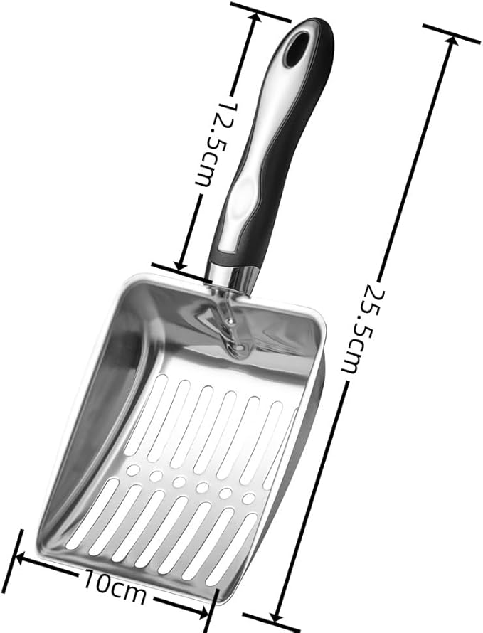 - ✔ 【Effortless Litter Cleaning】 The metal cat litter scoop features a deep aluminum alloy sifter and ergonomic plastic handle (11" long) for easy waste filtration—perfect for small litter boxes!