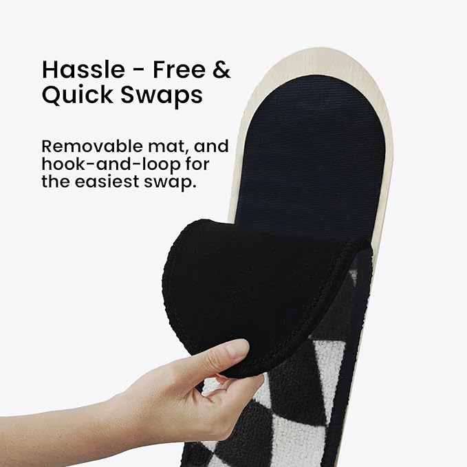 • Replaceable Scratch Mats – Easily swap designs using hook-and-loop backing; keep the board, change the look, and refresh your cat’s scratching spot.