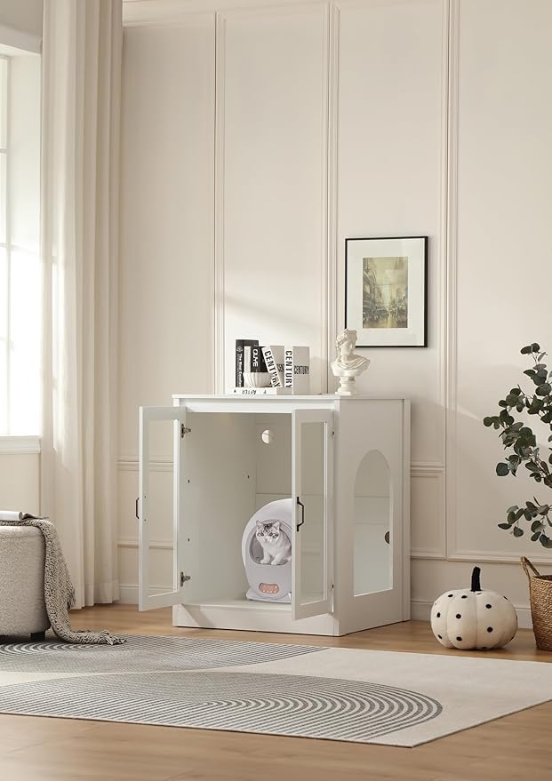 - 2)【Worry-free monitoring with our crystal-clear glass doors】Observe your cat's activities without disturbing them. The scratch-resistant safety glass provides clear and great visibility while containing litter scatter, creating the perfect balance between privacy for your cat and peace of mind for you.