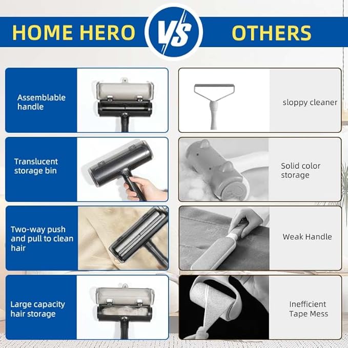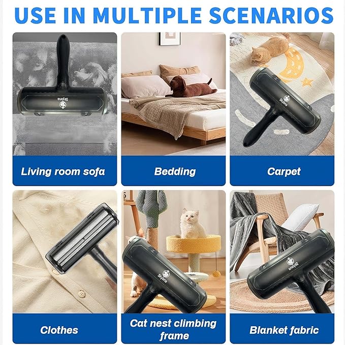 - versatile use: Effectively removes pet hair from furniture, carpets, bedding, car seats, and other surfaces with a wide roller head design