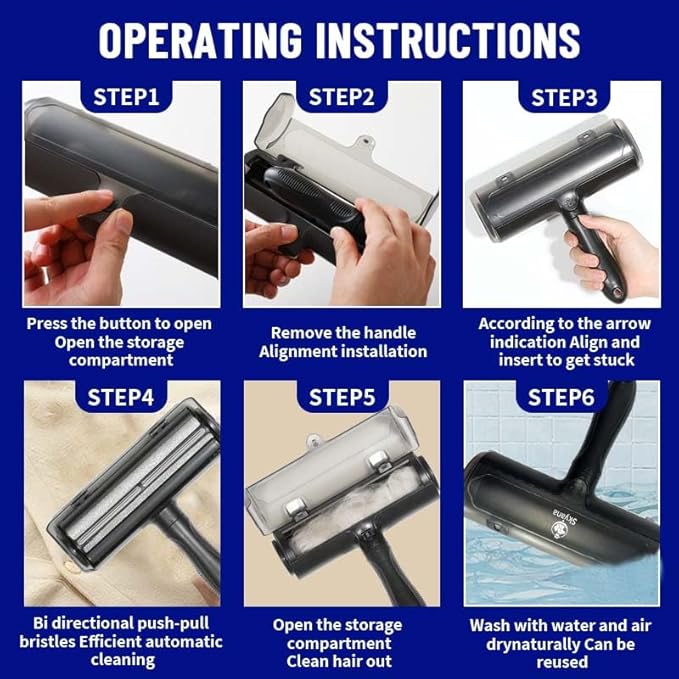 - self-cleaning design: Features an easy-to-use button mechanism that retracts collected pet hair into a built-in waste compartment for quick disposal