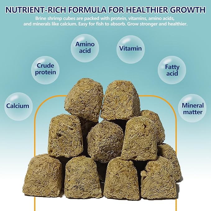 - 【Multi-Species Compatibility】Freeze dried brine shrimp cubes are perfect for most freshwater fish and marine fish like betta, guppy, goldfish, neon fish, angel fish, catfish, loaches cichlids etc.