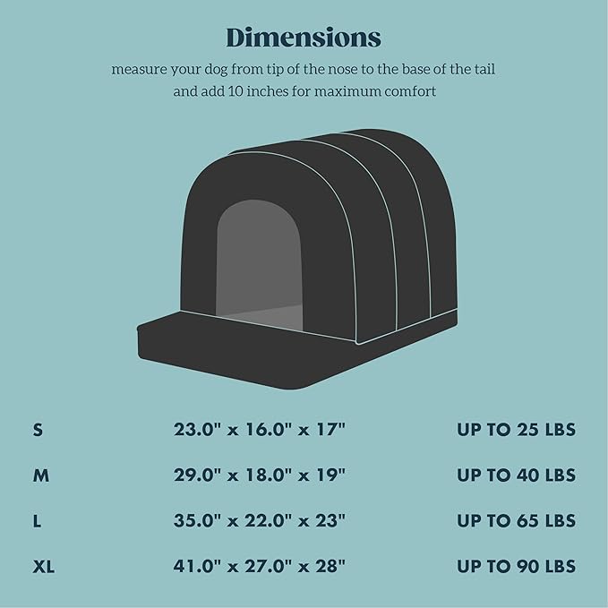 Orthopedic Dog House - Outdoor Waterproof Dog Shelter w/Porch - Indoor Pet House w/Egg-Crate Foam - Cooling - Machine Washable - Ideal for Small Breeds & Fits 24-Inch Crate - 23"x16"
