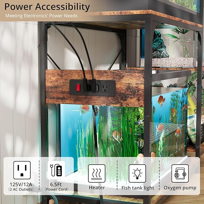 - Useful Power Outlets: The 29 gallon fish tank stand comes integrated with 3 AC power outlets, which provides convenience for heater rods, filters, LED lights, and other devices, avoiding cluttered wires, and simplifying your fish tank management