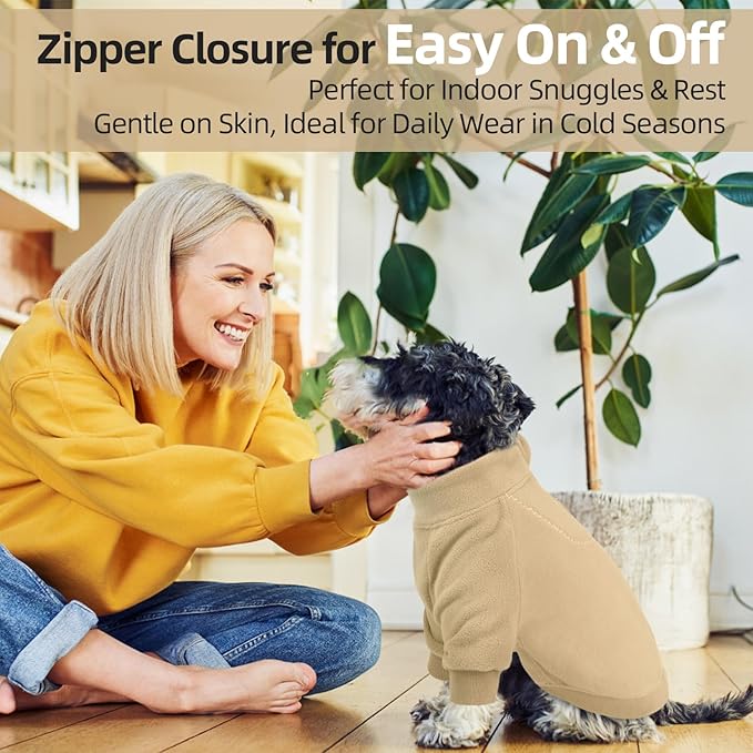 QBLEEV Dog Hoodie for Small Medium Large Dogs, Soft Fleece Pullover Dog Sweatshirt with Zipper, Winter Warm Hooded Sweatshirt Clothes for Daily Wear, Pet Cold Weather Clothing, Beige, M