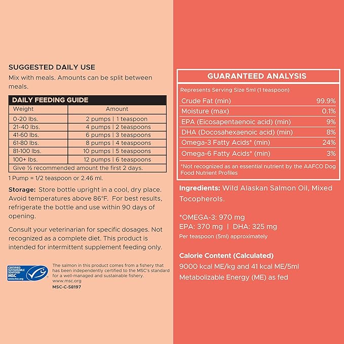 - The oil adds a delicious flavor that your pet will love! Recommended dosage varies by animal size; consult the package.
