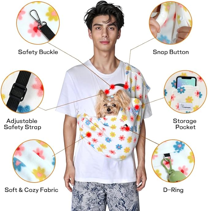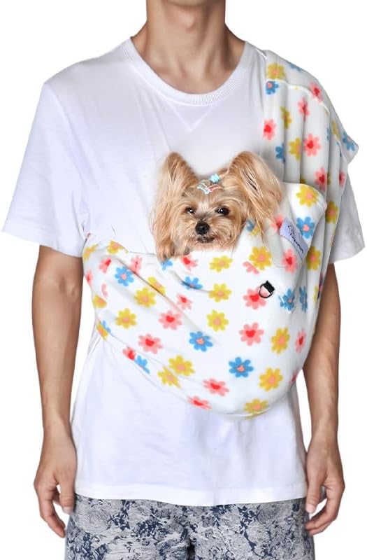 Dog Sling Carrier - Dog Sling for Small Dogs up to 10 lbs, Dog Carrier Sling with Adjustable Safety Strap & Buckle,Portable Dog Slings for Travel, Hands Free Cat Sling (Daisy)