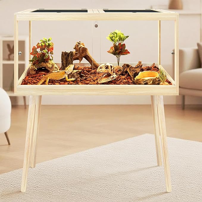 - 【Spacious Elevated Design】Available in 24", 30", 36", and 48" lengths with a raised 4-legs design(please refer to pic2 for exact size), this habitat offers ample room for reptiles to explore, bask, and hide. Refer to the second image for detailed sizing to select the best fit for your pet. The bottom includes an acrylic liner that makes cleaning easier while keeping the interior tidy.