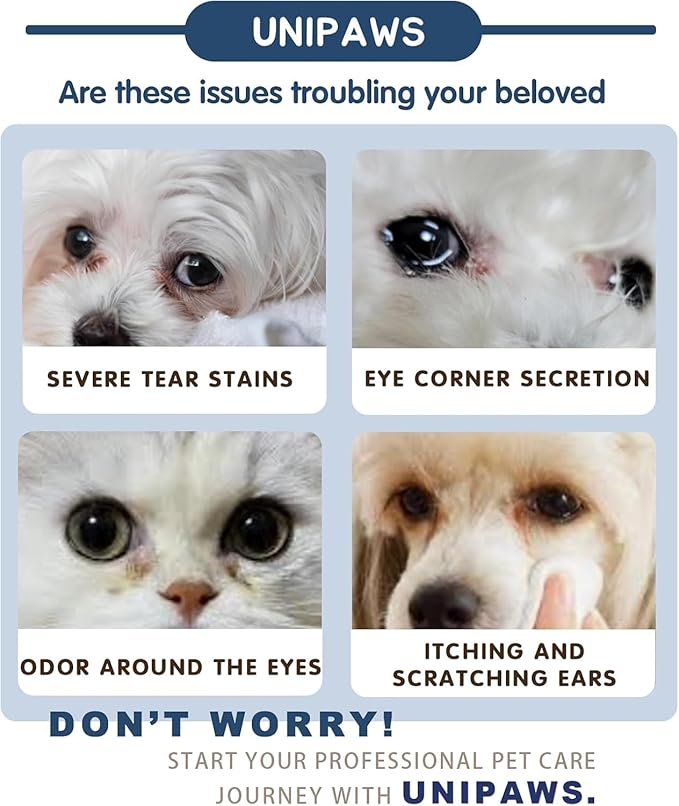 UNIPAWS Pet Tear Stain Remover & Eye Area Cleaner – Vet-Recommended Grooming Solution for Dogs & Cats – Reduces Stains, Comforts Watery, Itchy Eyes – Probiotic & Plant-Based Formula, 5.1 fl oz