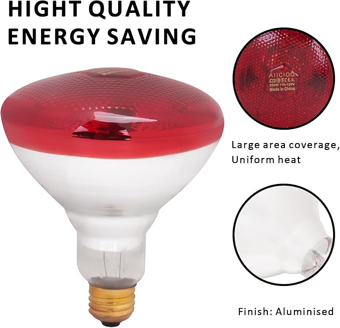 Aiicioo Infrared Heat Lamp Bulb 250W Red Infrared Heat Bulb for Chickens Reptile Heat Light Bulb for Brooder Coop Chicks Pet Reptile Amphibians Par38 Glass E26 Base