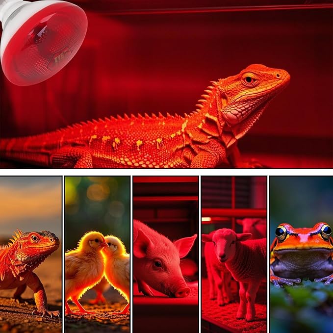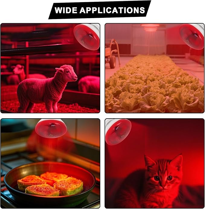 - Widely Used: 250W red infrared heating bulbs are not only suitable for poultry such as chickens and ducklings, pets such as cats, dogs and rabbits, but also can provide warm care for reptile pets such as bearded dragons, lizards, snakes, etc., while also promoting the growth of greenhouse plants and being used to bake and keep food warm in the food service industry.