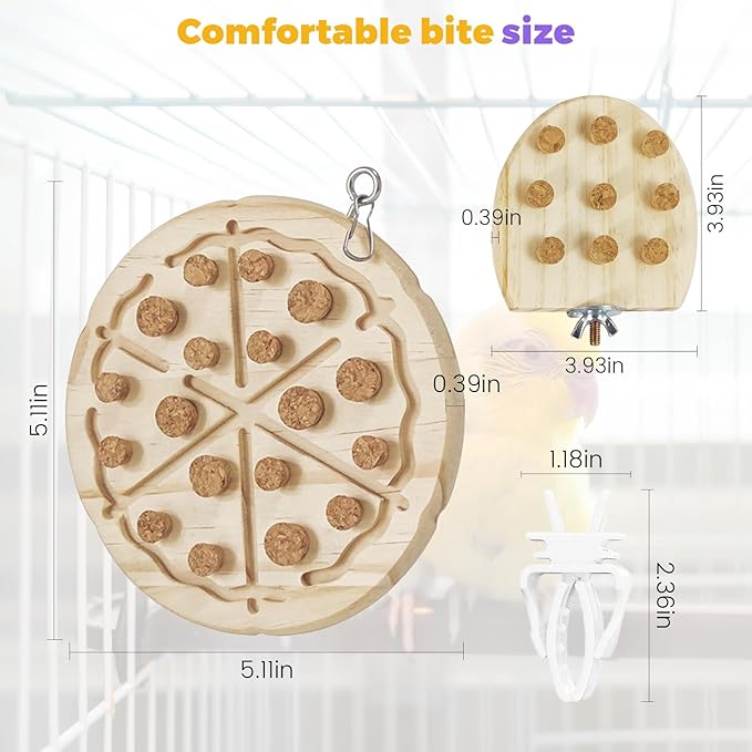 2 Pcs Bird Chew Toy Wooden Foraging Toys, Hanging Wooden Puzzle Foraging,Parrot Cork Stopper Toys Birds Feeding Toy,2 Pcs Bird Cage Food Holder Fruit, for Small and Medium Parrots(F)